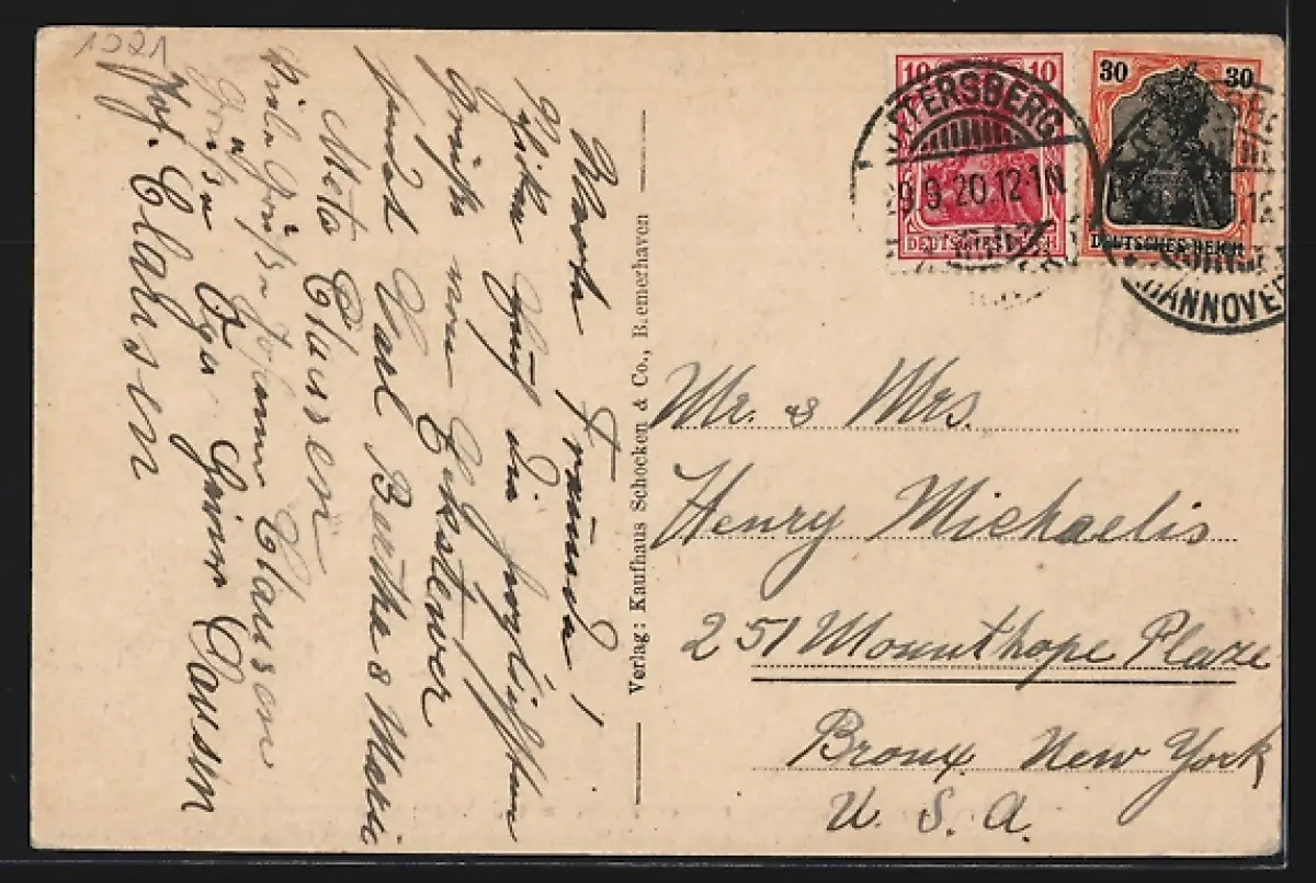 alte Ansichtskarte, gelaufen 1920, guter Zustand