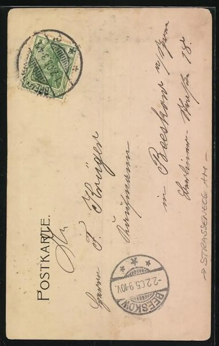 alte Ansichtskarte, gelaufen 1905, Stempelspur, Eckknick links unten, guter Zustand