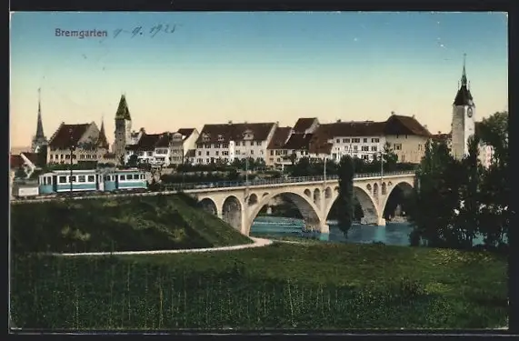 AK Bremgarten, Ortsansicht mit Strassenbahn