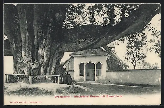 AK Bremgarten, Partie an der Einsiedelei Emaus mit Riesenlinde, Mönch