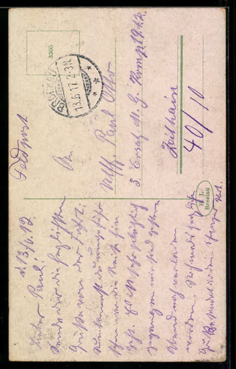 alte Ansichtskarte, gelaufen 1917, Eckknick unten li., guter Zustand