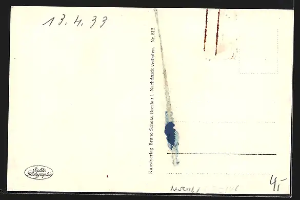 alte Ansichtskarte, ungelaufen, rückseitig Klebe- und Papierreste, guter Zustand