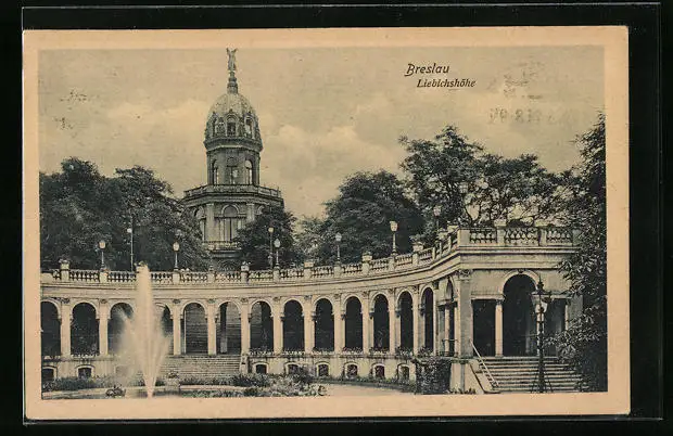 AK Breslau, Liebichshöhe mit Springbrunnen