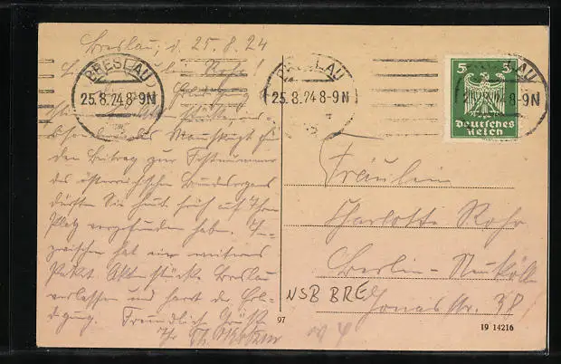 alte Ansichtskarte, gelaufen 1924, Stempelspur, guter Zustand