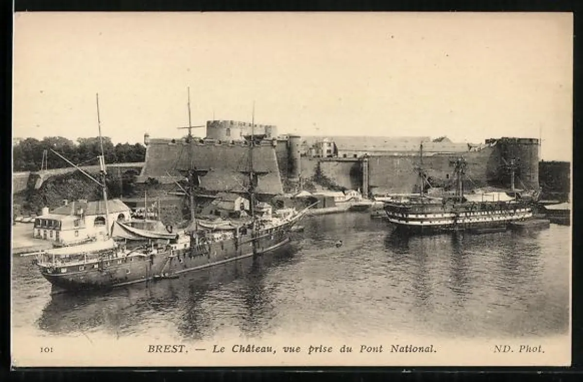 AK Brest, Le Château, Vue prise du Pont National, Hafen