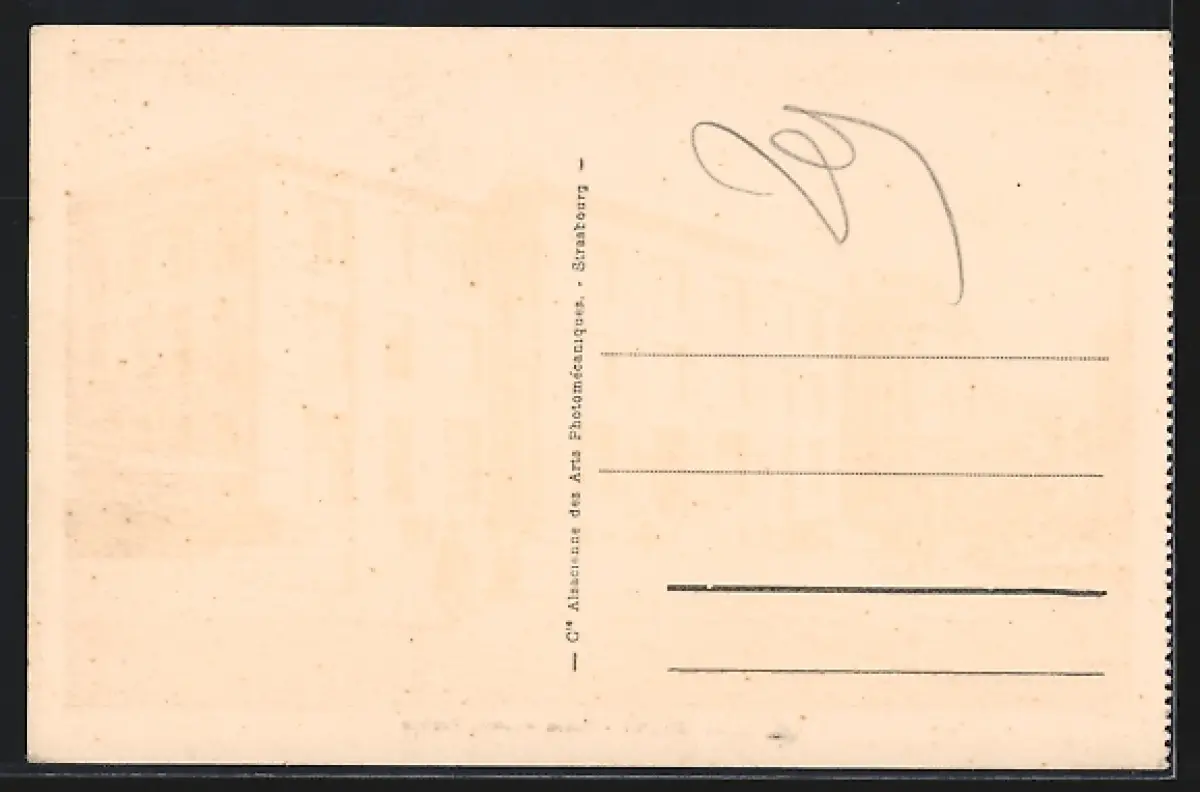 Personenbezogene Daten auf der Rückseite der Karte wurden durch blauen Textmarker unkenntlich gemacht. Die blauen Stellen sind auf die Vorderseite durchgeweicht und wirken sich negativ auf das Postkartenfoto aus