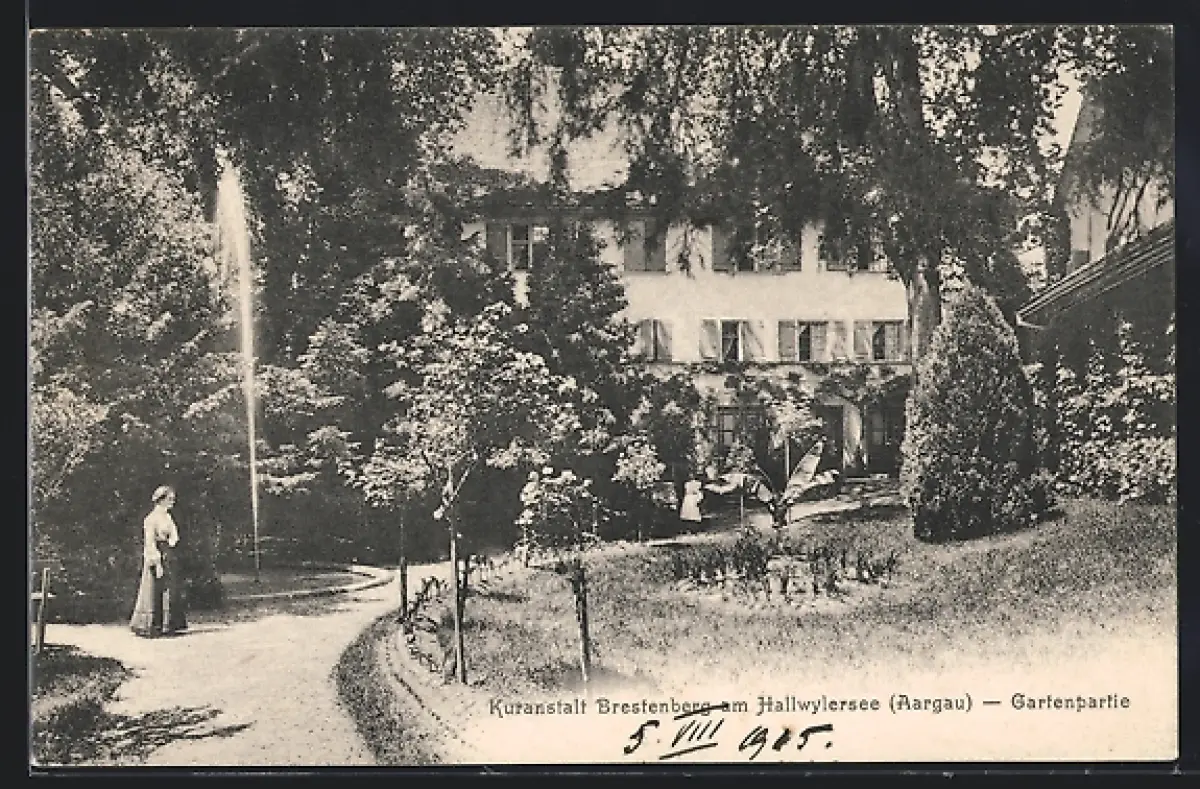 AK Brestenberg am Hallwylersee, Kuranstalt Brestenberg, Parkansicht, Springbrunnen