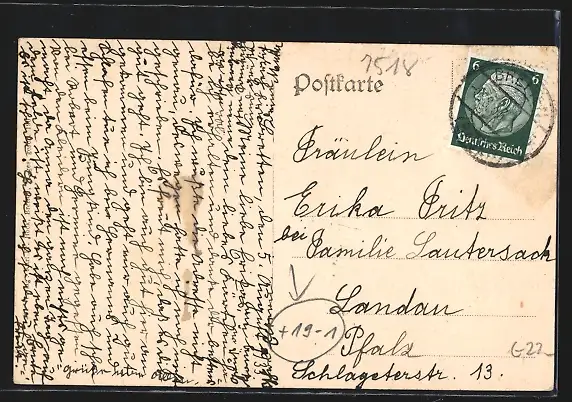 alte Ansichtskarte, gelaufen 1933, guter Zustand