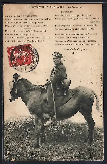 AK Bretteville-sur-Laize, Le Général à cheval avec une lettre timbrée