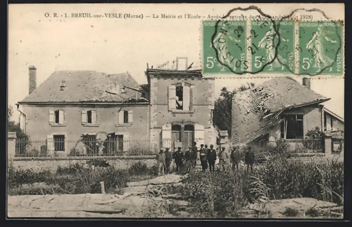 AK Breuil-sur-Vesle, La Maire et l`Ecole, Après la retraite des Allemands (Aout 1918)
