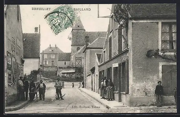 AK Breuillet, Rue animée avec habitants devant le tabac