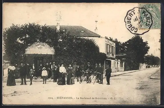 AK Brévannes, Le Boulevard de Brévannes avec habitants et cyclistes devant un café