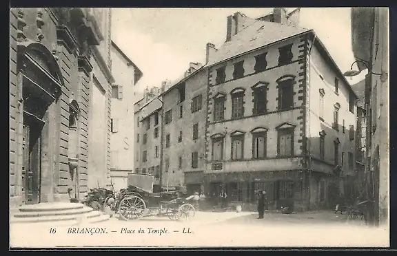 AK Briancon, Place du Temple avec des bâtiments et une charrette