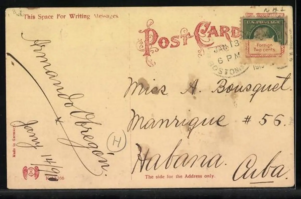 alte Ansichtskarte, gelaufen, Briefmarke entfernt, guter Zustand