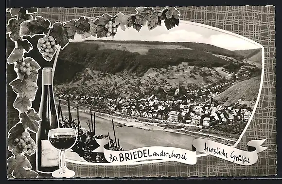 AK Briedel an der Mosel, Teilansicht mit Kirche, Passepartout
