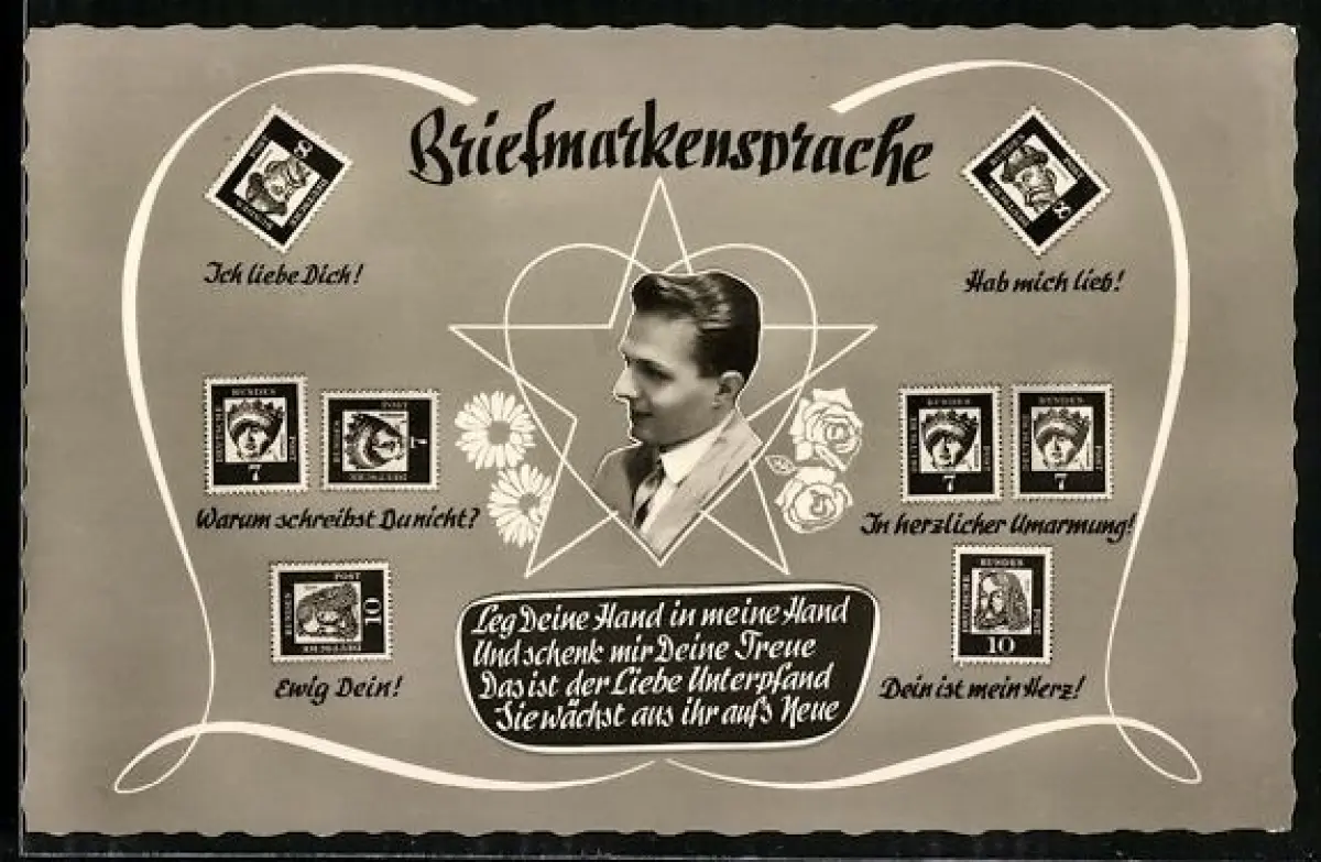 AK Briefmarkensprache, Leg Deine Hand in meine Hand und schenk mir Deine Treue