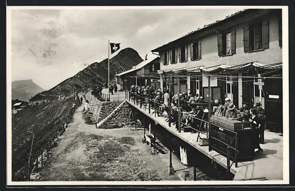 AK Brienz, Rothorn-Kulm, Hotel Brienz-Rothorn-Kulm mit Terrasse und Gästen