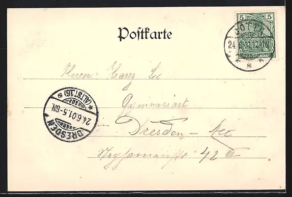 alte Ansichtskarte, gelaufen 1901, guter Zustand