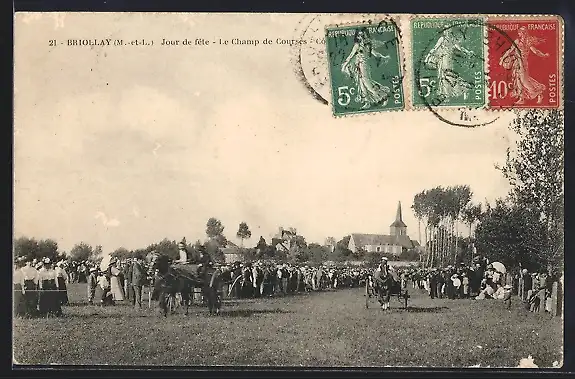 AK Briollay, Jour de fête, le Champ de Courses et la foule en 1921