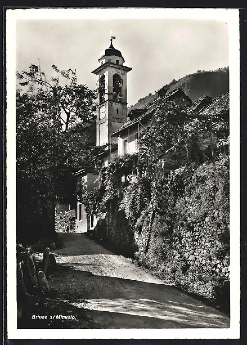 AK Brione s / Minusio, Ortspartie mit Kirchturm