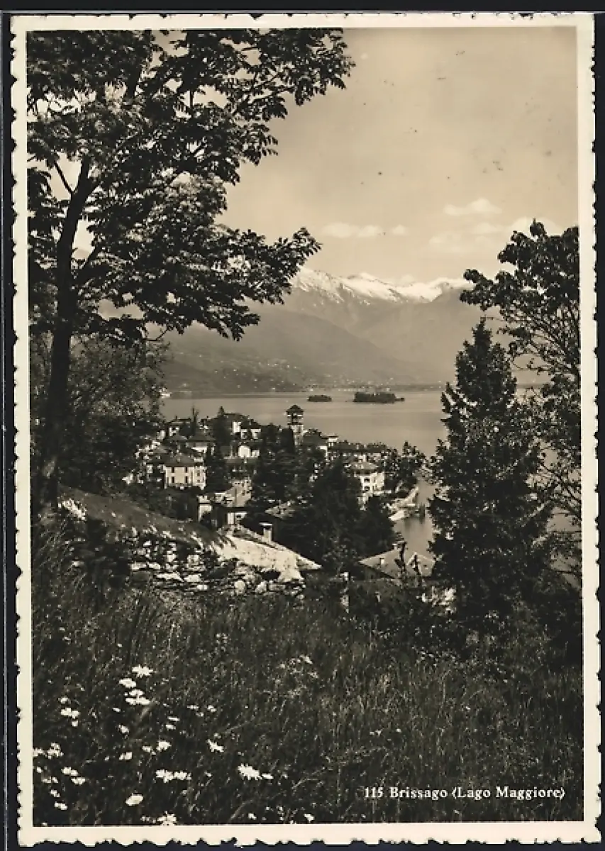 AK Brissago /Lago Maggiore, Panorama mit Bergen