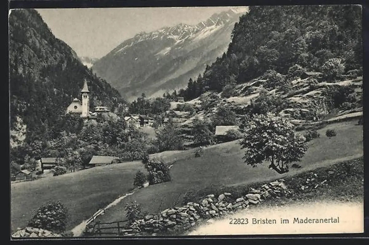 AK Bristen im Maderanertal, Teilansicht des Ortes mit Kirche