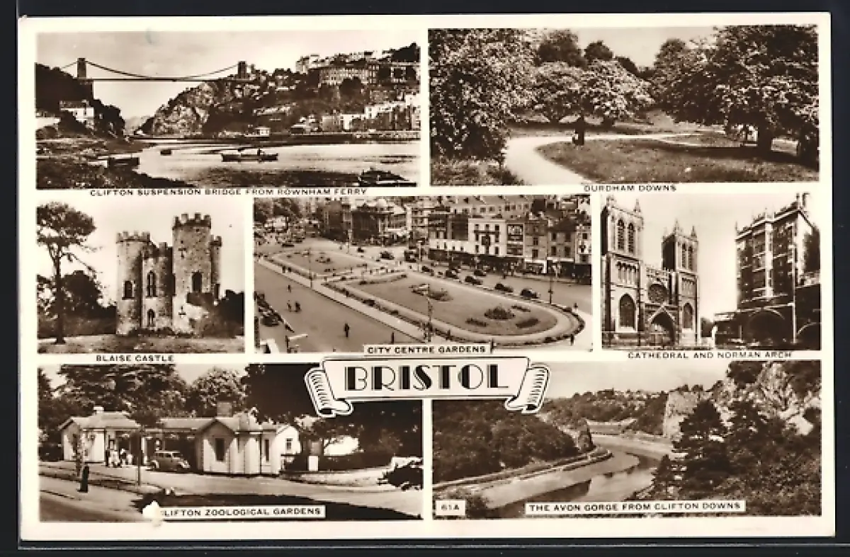 AK Bristol, City Centre Gardens, Cathedral and Norman Arch, Clifton Suspension Bridge