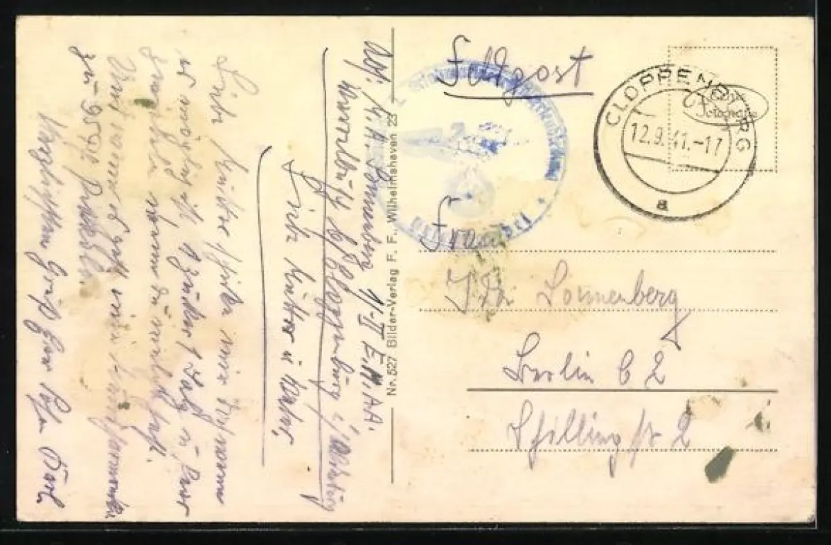 alte Ansichtskarte, gelaufen 1941 als Feldpost, Stempelspur, guter Zustand