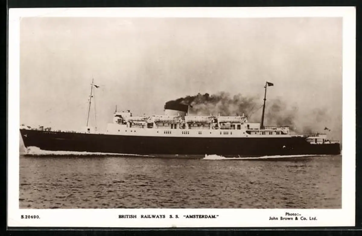 AK British Railways, das Passagierschiff S. S. Amsterdam unterwegs auf See