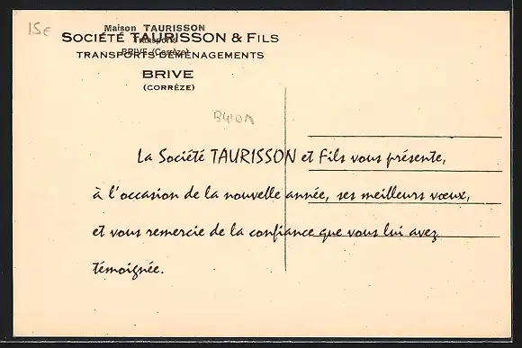 AK Brive, Établissement de la Société Taurisson & Fils, garde-meubles et déménagements