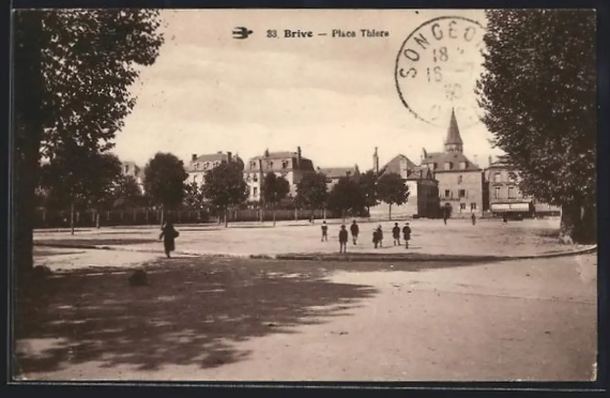 AK Brive, Place Thiers avec enfants jouant sur la place