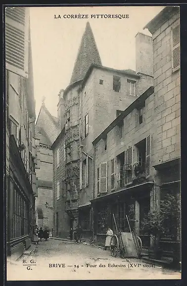 AK Brive, Tour des Échevins (XVIe siècle) dans une rue pittoresque