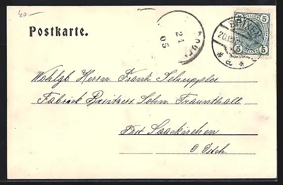 alte Ansichtskarte, gelaufen 1905, guter Zustand