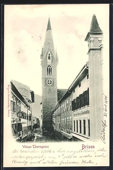 AK Brixen, Weisse Thurmgasse mit Weger`scher Kunsthandlung