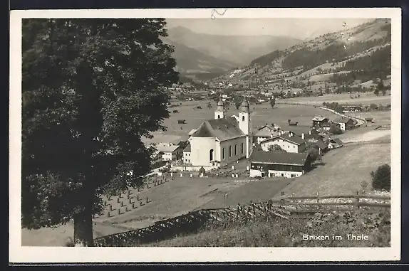 AK Brixen im Thale, Ortsansicht von einem Hang aus