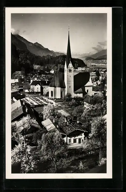 AK Brixlegg in Tirol, Blick auf die Kirche im Ort