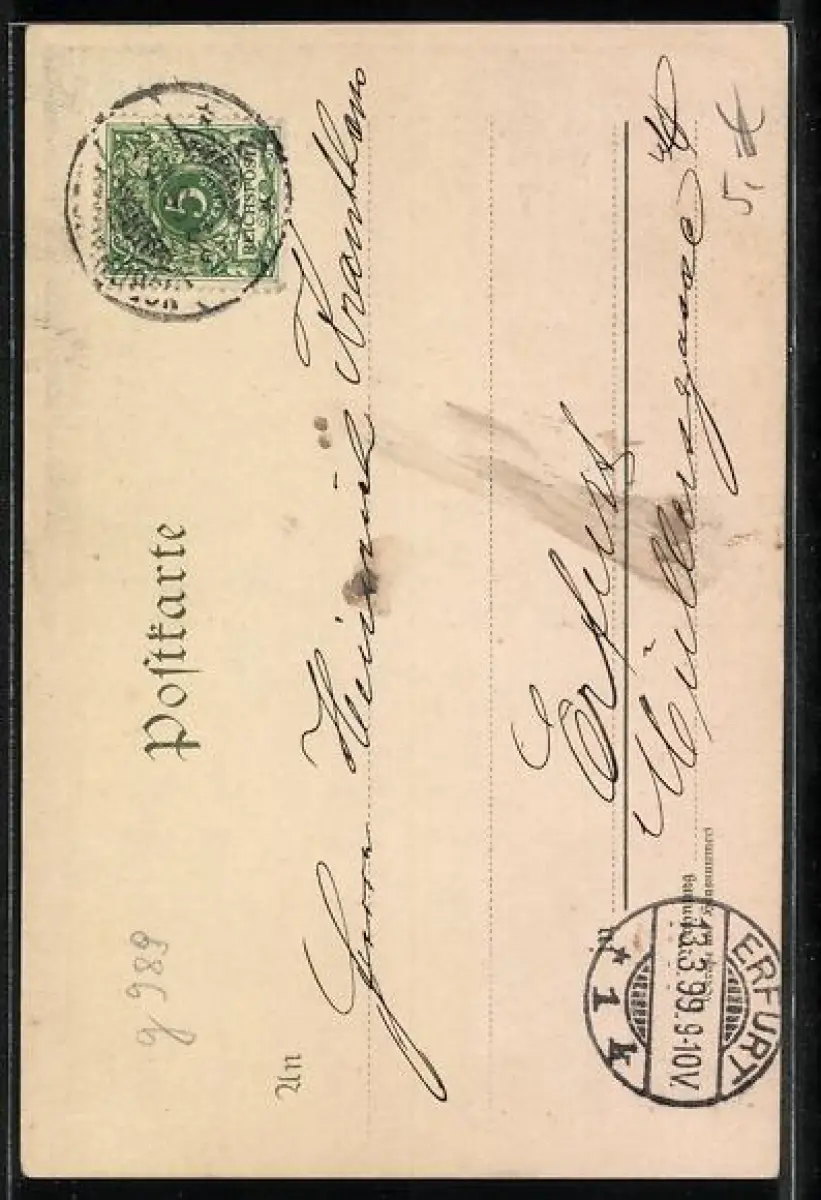 alte Ansichtskarte, gelaufen 1899, Stempelspur, guter Zustand