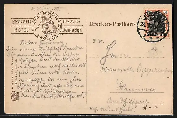 alte Ansichtskarte, gelaufen 1920, Stempelspur, guter Zustand