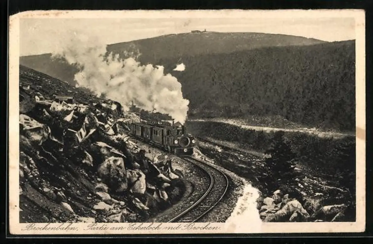 AK Brockenbahn, Partie am Eckerloch mit Brocken