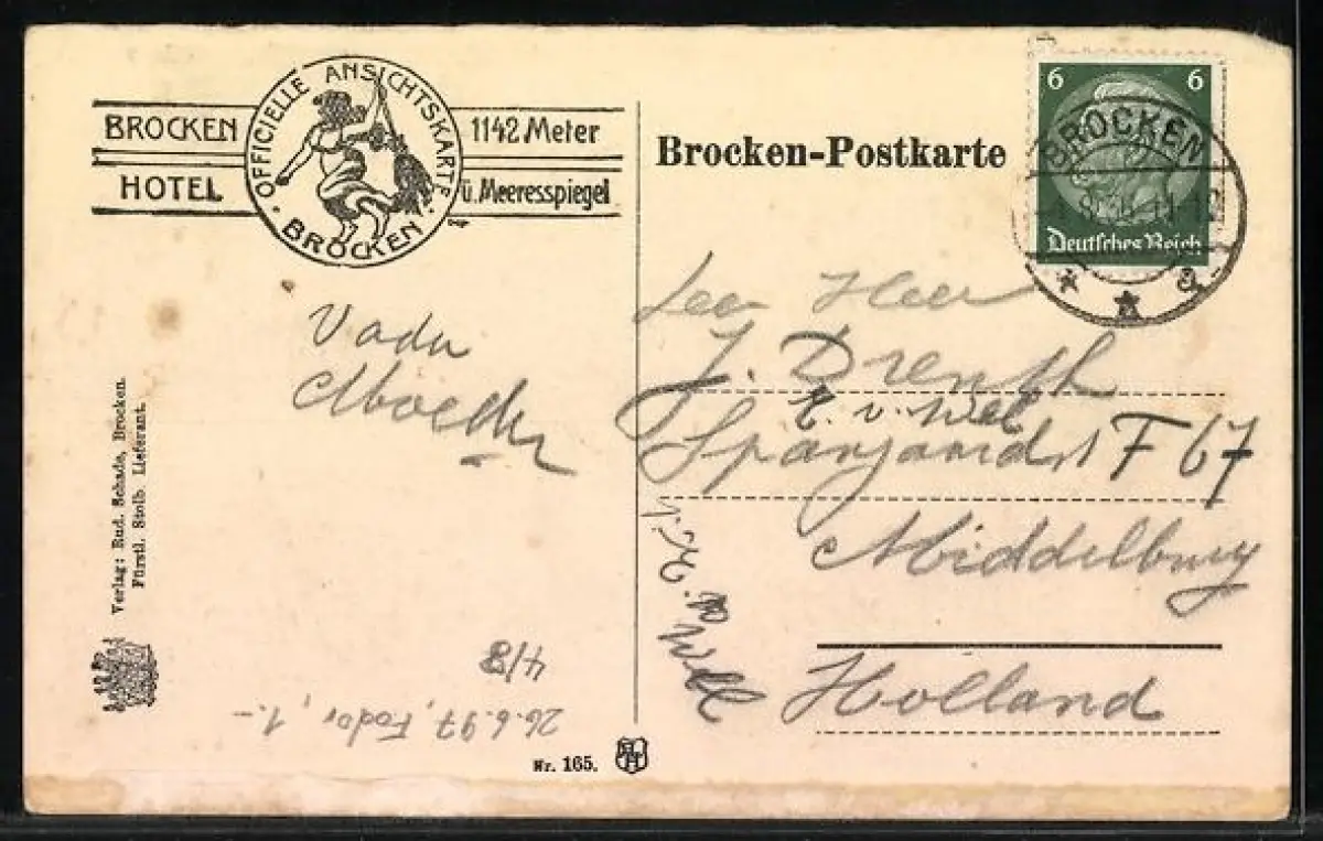 gelaufen 1936, rückseitig Oberflächenschaden, guter Zustand