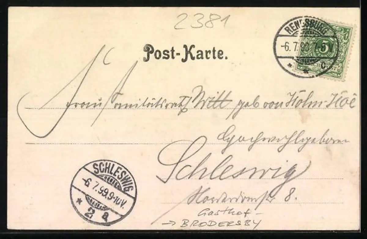alte Ansichtskarte, gelaufen 1899, Bugspur re. unten, guter Zustand