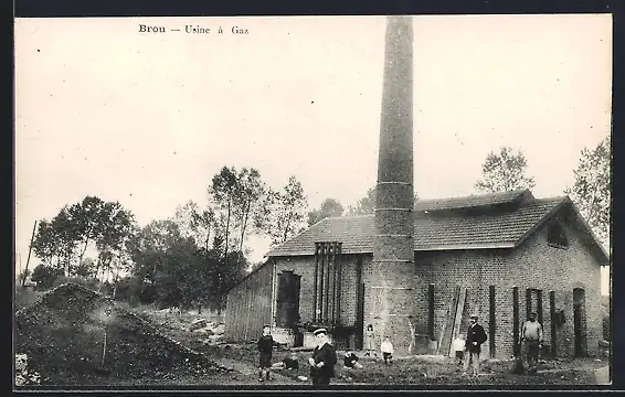 AK Brou, Usine à gaz avec cheminée et ouvriers devant l`entrée