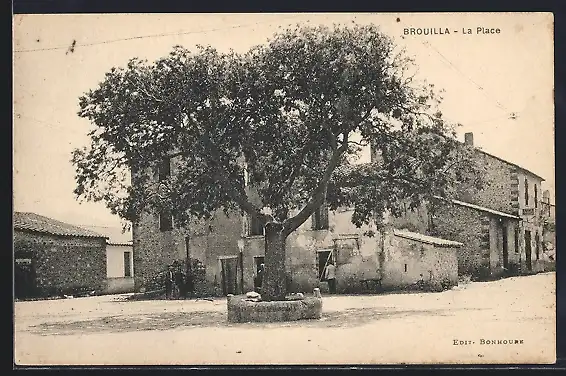AK Brouilla, La Place avec grand arbre et bâtiments adjacents