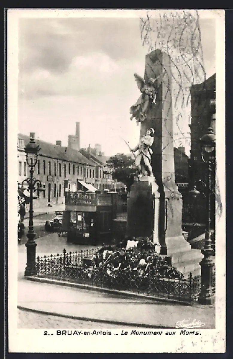 AK Bruay-en-Artois, Le Monument aux Morts avec bus à l`arrière-plan