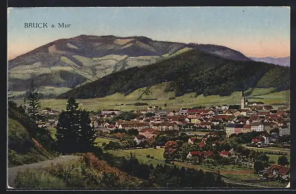 AK Bruck a. Mur, Teilansicht mit Kirche