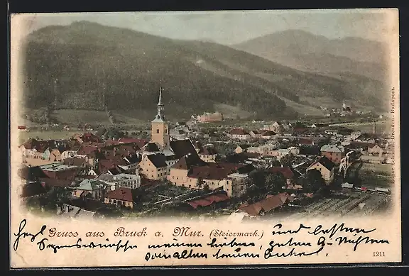 AK Bruck a. d. Mur, Ortsansicht aus der Vogelschau