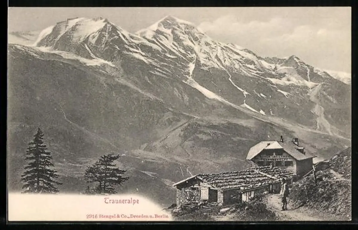 AK Bruck an der Grossglocknerstrasse, Trauneralpe, Alpengasthof mit Gebirge im Hintergrund
