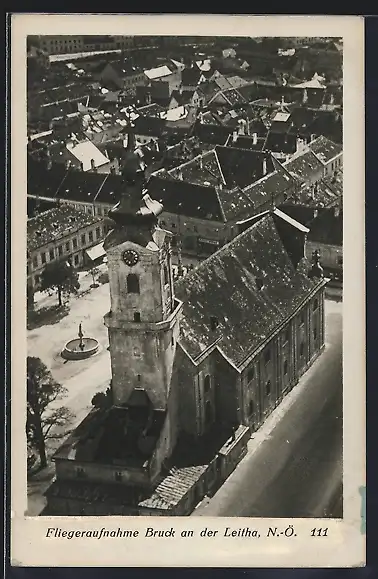 AK Bruck an der Leitha, Teilansicht mit Kirche vom Flugzeug aus