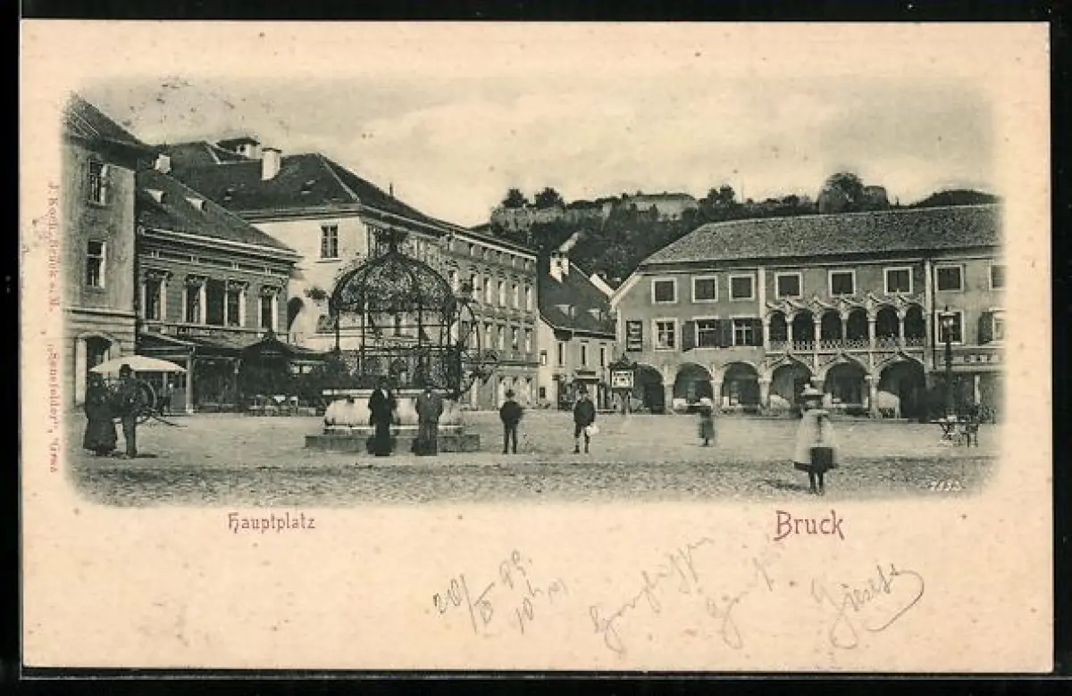 AK Bruck an der Mur, Hauptplatz mit Brunnen