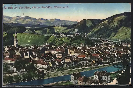 AK Bruck an der Mur, Ortsansicht mit Landschaftspanorama